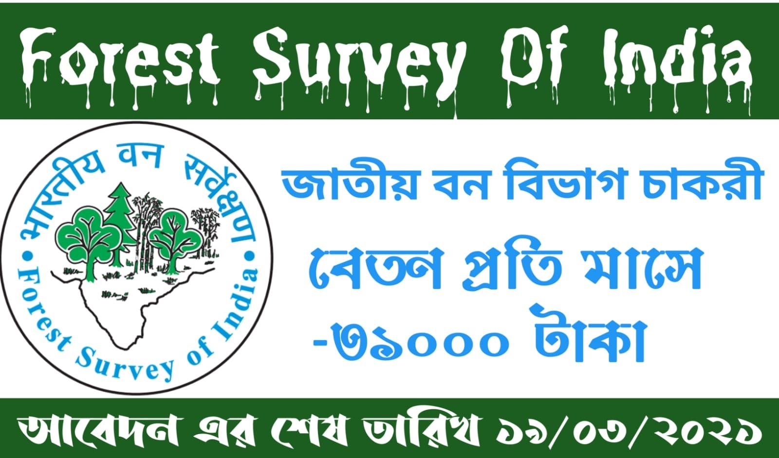 জাতীয় বন দপ্তরে Forest Survey of India (FSI) বেশ কিছু পদে কর্মী নিয়োগ মোট ৪৪ টি পদে সম্পুন্ন জানতে পুরোটা পড়ুন।