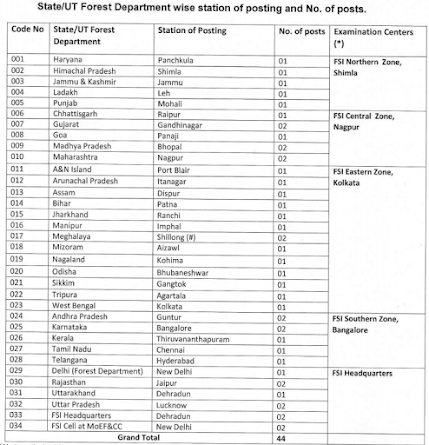 পরীক্ষা কেন্দ্র ঃ- প্রতেক রাজ্য বিভিন্ন শহর এ Forest Survey of India (FSI) বিভিন্ন জোন এ পরীক্ষা কেন্দ্র রয়েছে।
